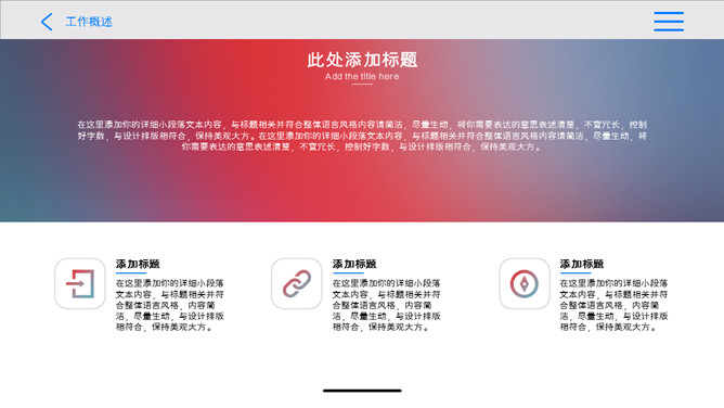 创意苹果IOS风格PPT模板abby1年前发布关注私信0208919创意苹果IOS风格PPT模板此内容为付费资源,请付费后查看R1黄金会员免费钻石会员免费立即购买您当前未登录!建议登陆后购买,可保存购买订单付费资源已售 15 创意苹果IOS风格PPT模板。一套创意设计幻灯片模板,苹果IOS设计风格,彩色渐变背景,半透明效果。 © 版权声明文章版权归作者所有,未经允许请勿转载。THE ENDPPT模版 喜欢就支持一下吧点赞19 分享QQ空间微博QQ好友海报分享复制链接收藏