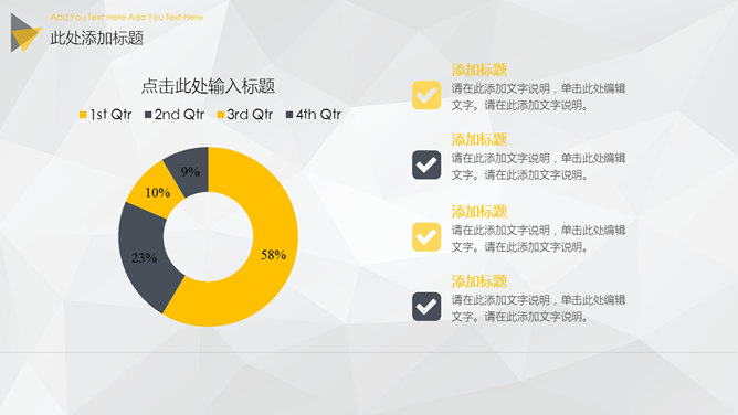 大图背景商务杂志风PPT模板abby1年前发布关注私信057713大图背景商务杂志风PPT模板此内容为付费资源,请付费后查看R1黄金会员免费钻石会员免费立即购买您当前未登录!建议登陆后购买,可保存购买订单付费资源已售 5 大图背景商务杂志风PPT模板。一套大气商务风格幻灯片模板,大图全图封面背景,黑黄配色,精美时尚。 © 版权声明文章版权归作者所有,未经允许请勿转载。THE ENDPPT模版 喜欢就支持一下吧点赞13 分享QQ空间微博QQ好友海报分享复制链接收藏
