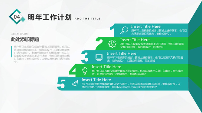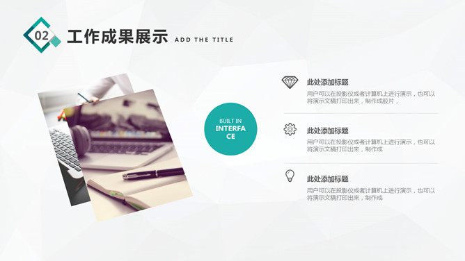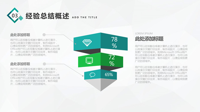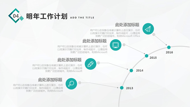 小方块装饰通用工作汇报PPT模板abby1年前发布关注私信087020小方块装饰通用工作汇报PPT模板此内容为付费资源,请付费后查看R1黄金会员免费钻石会员免费立即购买您当前未登录!建议登陆后购买,可保存购买订单付费资源已售 5 小方块装饰通用工作汇报PPT模板。一套通用工作总结汇报幻灯片模板,清新蓝绿配色,小方块装饰。 © 版权声明文章版权归作者所有,未经允许请勿转载。THE ENDPPT模版 喜欢就支持一下吧点赞20 分享QQ空间微博QQ好友海报分享复制链接收藏