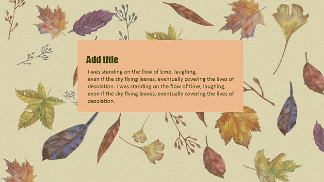 布纹背景秋天落叶树叶PPT模板abby1年前发布关注私信08472布纹背景秋天落叶树叶PPT模板此内容为付费资源,请付费后查看R1黄金会员免费钻石会员免费立即购买您当前未登录!建议登陆后购买,可保存购买订单付费资源已售 8 布纹背景秋天落叶树叶PPT模板。一套秋季秋天主题幻灯片模板,米黄色布纹背景,唯美秋叶落叶装饰。 © 版权声明文章版权归作者所有,未经允许请勿转载。THE ENDPPT模版 喜欢就支持一下吧点赞2 分享QQ空间微博QQ好友海报分享复制链接收藏