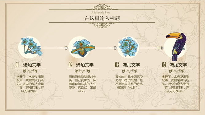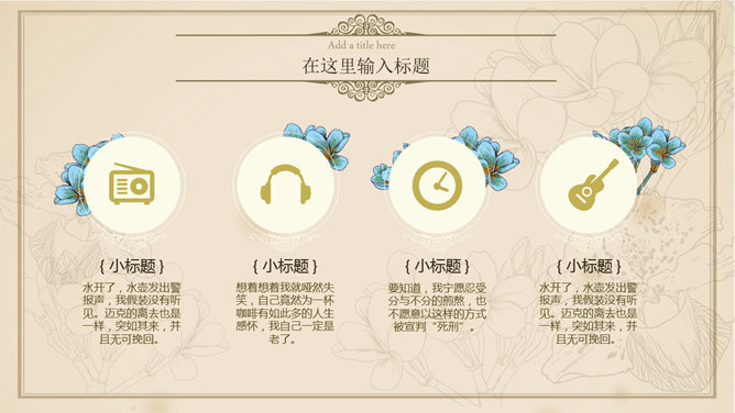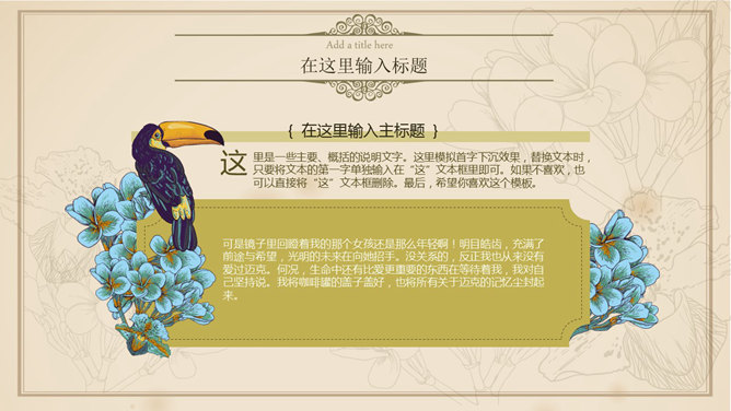 文艺小清新欧式复古PPT模板abby1年前发布关注私信0119221文艺小清新欧式复古PPT模板此内容为付费资源,请付费后查看R1黄金会员免费钻石会员免费立即购买您当前未登录!建议登陆后购买,可保存购买订单付费资源已售 1 文艺小清新欧式复古PPT模板。一份清新欧式复古风格幻灯片模板,复古花纹、配色、字体等元素设计,动态播放效果。 © 版权声明文章版权归作者所有,未经允许请勿转载。THE ENDPPT模版 喜欢就支持一下吧点赞21 分享QQ空间微博QQ好友海报分享复制链接收藏