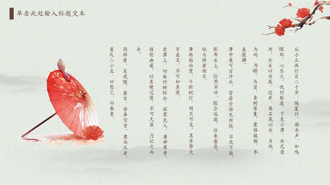 梅花红伞雅致中国风PPT模板abby1年前发布关注私信096317梅花红伞雅致中国风PPT模板此内容为付费资源,请付费后查看R1黄金会员免费钻石会员免费立即购买您当前未登录!建议登陆后购买,可保存购买订单付费资源已售 10 梅花红伞雅致中国风PPT模板。一套精美古典中国风幻灯片模板,布纹远山背景,梅花红伞装饰,简约雅致。建议安装字体:TypeLand 康熙字典體試用版、汉仪全唐诗简。 © 版权声明文章版权归作者所有,未经允许请勿转载。THE ENDPPT模版 喜欢就支持一下吧点赞17 分享QQ空间微博QQ好友海报分享复制链接收藏