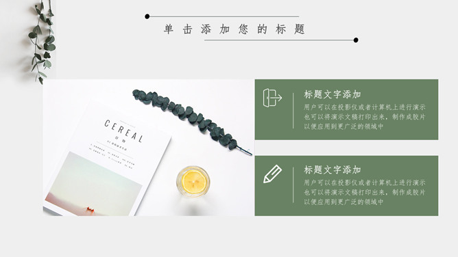 淡雅文艺自然小清新PPT模板abby1年前发布关注私信065413淡雅文艺自然小清新PPT模板此内容为付费资源,请付费后查看R1黄金会员免费钻石会员免费立即购买您当前未登录!建议登陆后购买,可保存购买订单付费资源已售 14 淡雅文艺自然小清新PPT模板。一套文艺小清新幻灯片模板,写实植物叶子和静物背景,淡雅自然。 © 版权声明文章版权归作者所有,未经允许请勿转载。THE ENDPPT模版 喜欢就支持一下吧点赞13 分享QQ空间微博QQ好友海报分享复制链接收藏