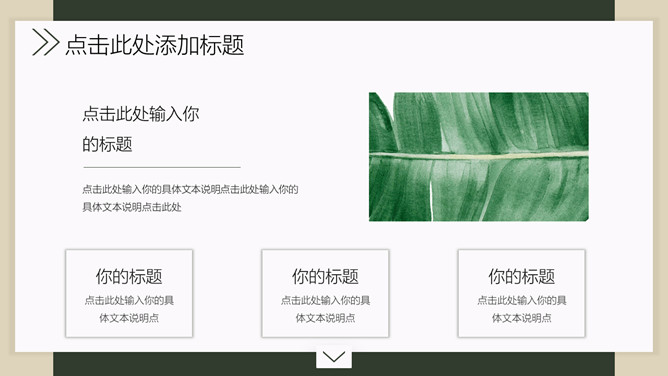 清新淡雅绿色叶子PPT模板abby1年前发布关注私信0111310清新淡雅绿色叶子PPT模板此内容为付费资源,请付费后查看R1黄金会员免费钻石会员免费立即购买您当前未登录!建议登陆后购买,可保存购买订单付费资源已售 13 清新淡雅绿色叶子PPT模板。一套清新淡雅设计幻灯片模板,素雅背景,清新绿色叶子装饰,适合教育教学课件等主题。 © 版权声明文章版权归作者所有,未经允许请勿转载。THE ENDPPT模版 喜欢就支持一下吧点赞10 分享QQ空间微博QQ好友海报分享复制链接收藏