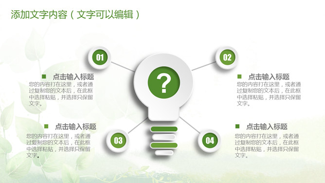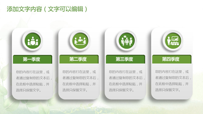 清新绿色多功能通用PPT模板abby1年前发布关注私信0225419清新绿色多功能通用PPT模板此内容为付费资源,请付费后查看R1黄金会员免费钻石会员免费立即购买您当前未登录!建议登陆后购买,可保存购买订单付费资源已售 14 清新绿色多功能通用PPT模板。一套多功能幻灯片模板,微立体视觉效果,植物背景,清新绿色配色,通用性强。 © 版权声明文章版权归作者所有,未经允许请勿转载。THE ENDPPT模版 喜欢就支持一下吧点赞19 分享QQ空间微博QQ好友海报分享复制链接收藏