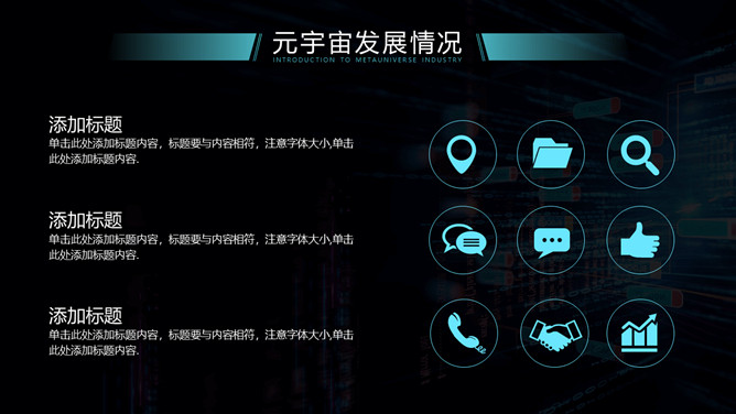 炫酷科技风元宇宙主题PPT模板abby1年前发布关注私信0200715炫酷科技风元宇宙主题PPT模板此内容为付费资源,请付费后查看R1黄金会员免费钻石会员免费立即购买您当前未登录!建议登陆后购买,可保存购买订单付费资源已售 14 炫酷科技风元宇宙主题PPT模板。一套元宇宙主题幻灯片模板,炫酷科技风设计,介绍相关产业目前情况和未来发展。 © 版权声明文章版权归作者所有,未经允许请勿转载。THE ENDPPT模版 喜欢就支持一下吧点赞15 分享QQ空间微博QQ好友海报分享复制链接收藏