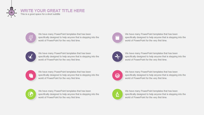 简约创意多彩小灯泡PPT模板abby1年前发布关注私信010132简约创意多彩小灯泡PPT模板此内容为付费资源,请付费后查看R1黄金会员免费钻石会员免费立即购买您当前未登录!建议登陆后购买,可保存购买订单付费资源已售 19 简约创意多彩小灯泡PPT模板。一套创意简约幻灯片模板,清新彩色配色,小灯泡装饰,图形图表页面丰富。 © 版权声明文章版权归作者所有,未经允许请勿转载。THE ENDPPT模版 喜欢就支持一下吧点赞2 分享QQ空间微博QQ好友海报分享复制链接收藏