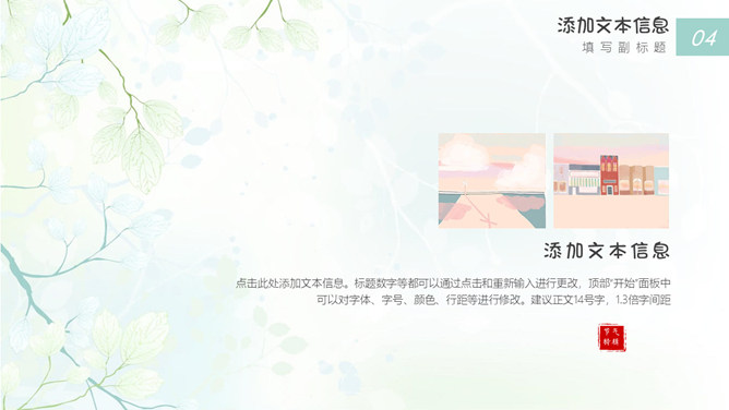 简约唯美文艺淡雅清新PPT模板abby1年前发布关注私信098411简约唯美文艺淡雅清新PPT模板此内容为付费资源,请付费后查看R1黄金会员免费钻石会员免费立即购买您当前未登录!建议登陆后购买,可保存购买订单付费资源已售 11 简约唯美文艺淡雅清新PPT模板。一套小清新幻灯片模板,淡雅莫兰迪绿色配色,清新文绿叶装饰,简约唯美。 © 版权声明文章版权归作者所有,未经允许请勿转载。THE ENDPPT模版 喜欢就支持一下吧点赞11 分享QQ空间微博QQ好友海报分享复制链接收藏