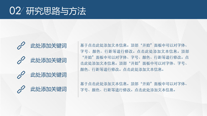 简约大方实用论文答辩PPT模板abby1年前发布关注私信010669简约大方实用论文答辩PPT模板此内容为付费资源,请付费后查看R1黄金会员免费钻石会员免费立即购买您当前未登录!建议登陆后购买,可保存购买订单付费资源已售 9 简约大方实用论文答辩PPT模板。一套毕业论文答辩幻灯片模板,大气稳重蓝色主色调,框架结构完整,简洁实用,把学校logo替换成你自己的即可。更多同类模板请参阅:论文ppt模板。 © 版权声明文章版权归作者所有,未经允许请勿转载。THE ENDPPT模版 喜欢就支持一下吧点赞9 分享QQ空间微博QQ好友海报分享复制链接收藏