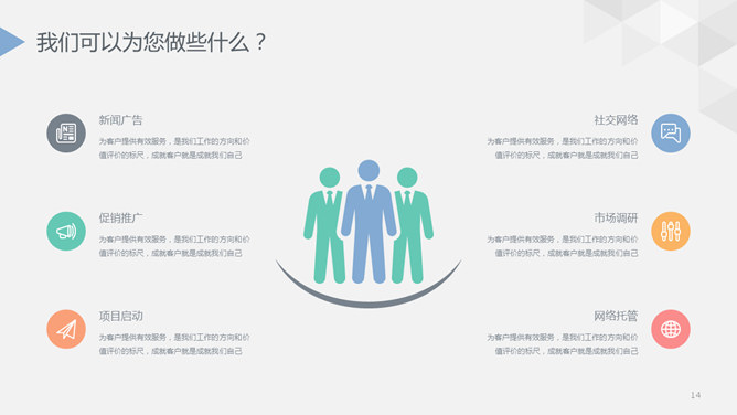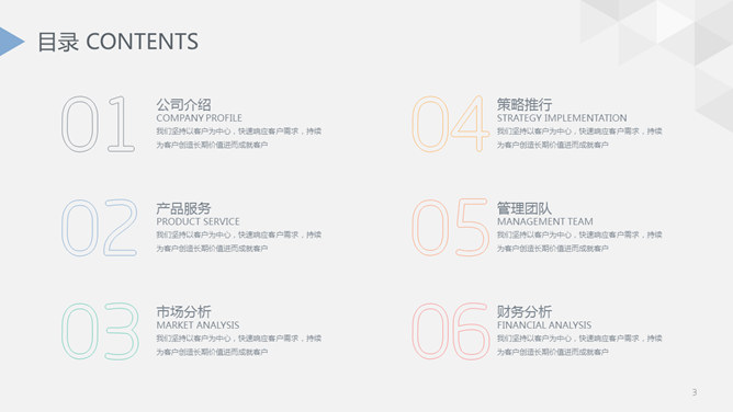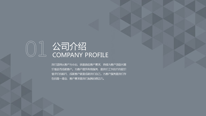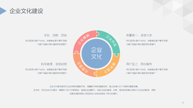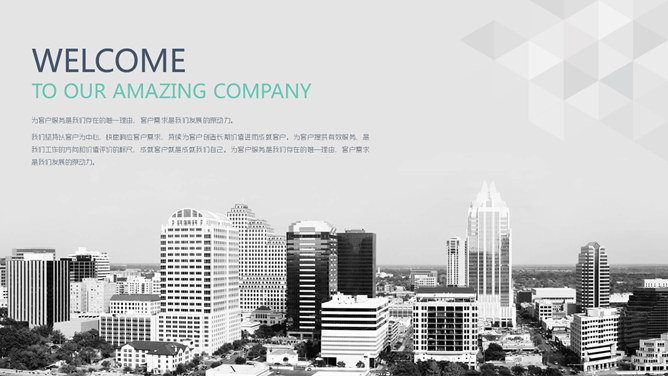 精美实用公司介绍PPT模板abby1年前发布关注私信019676精美实用公司介绍PPT模板此内容为付费资源,请付费后查看R1黄金会员免费钻石会员免费立即购买您当前未登录!建议登陆后购买,可保存购买订单付费资源已售 19 精美实用公司介绍PPT模板。一套设计精美的公司介绍简介幻灯片模板,创意三角形装饰,页面丰富实用。 © 版权声明文章版权归作者所有,未经允许请勿转载。THE ENDPPT模版 喜欢就支持一下吧点赞6 分享QQ空间微博QQ好友海报分享复制链接收藏