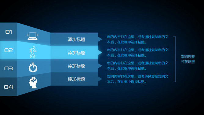 蓝色荧光炫酷动态手势PPT模板abby1年前发布关注私信0191821蓝色荧光炫酷动态手势PPT模板此内容为付费资源,请付费后查看R1黄金会员免费钻石会员免费立即购买您当前未登录!建议登陆后购买,可保存购买订单付费资源已售 14 蓝色荧光炫酷动态手势PPT模板。一套动态效果非常炫酷的幻灯片模板,科技感蓝色荧光效果设计,动态手势切换,适合互联网、科技类等主题。使用字体:Pirulen、UKIJ Qolyazma。 © 版权声明文章版权归作者所有,未经允许请勿转载。THE ENDPPT模版 喜欢就支持一下吧点赞21 分享QQ空间微博QQ好友海报分享复制链接收藏