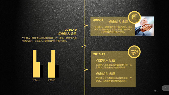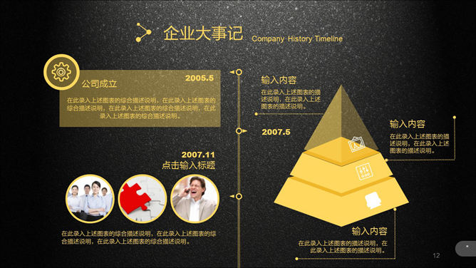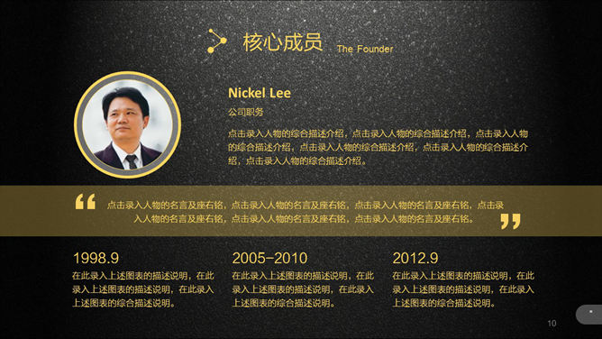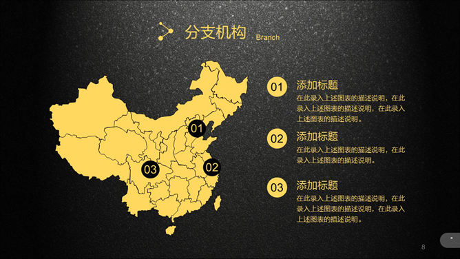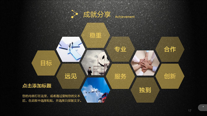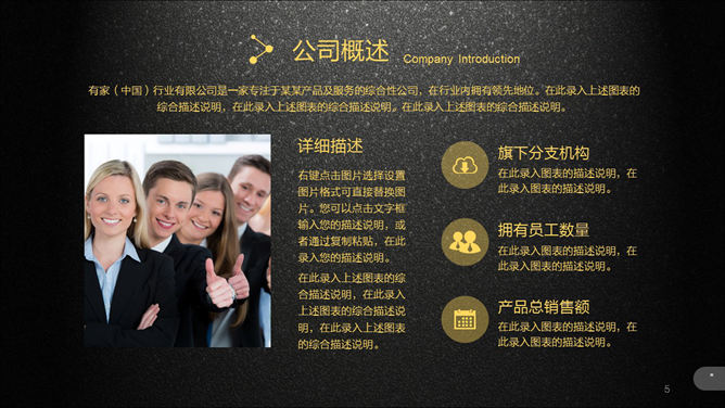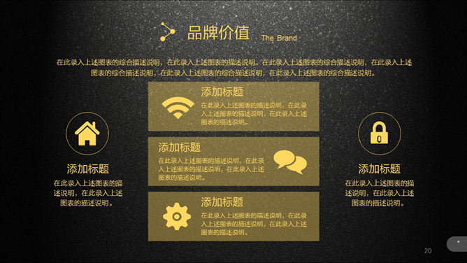 超强公司介绍企业宣传PPT模板。一份高大上精品企业宣传公司介绍幻灯片模板,质感黑色磨砂毕竟,黄色主色调,半透明图形元素,炫酷动态演示效果,共51页,功能非常强大,包括关于我们、企业文化、产品和服务、展望未来和联系我们几个部分。所用字体:方正兰亭黑_GBK,请自行下载安装。