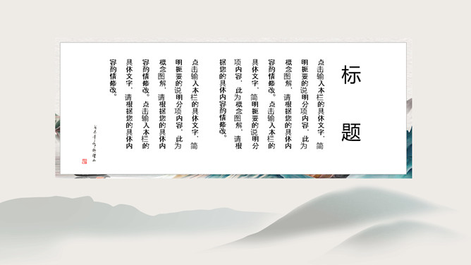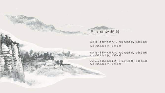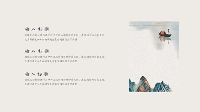 雅致古典山水中国风PPT模板abby1年前发布关注私信0190210雅致古典山水中国风PPT模板此内容为付费资源,请付费后查看R1黄金会员免费钻石会员免费立即购买您当前未登录!建议登陆后购买,可保存购买订单付费资源已售 3 雅致古典山水中国风PPT模板。一套古典中国风幻灯片模板,雅致水墨山水背景,简约设计,动态播放效果。 © 版权声明文章版权归作者所有,未经允许请勿转载。THE ENDPPT模版 喜欢就支持一下吧点赞10 分享QQ空间微博QQ好友海报分享复制链接收藏