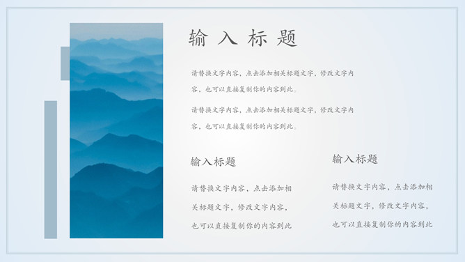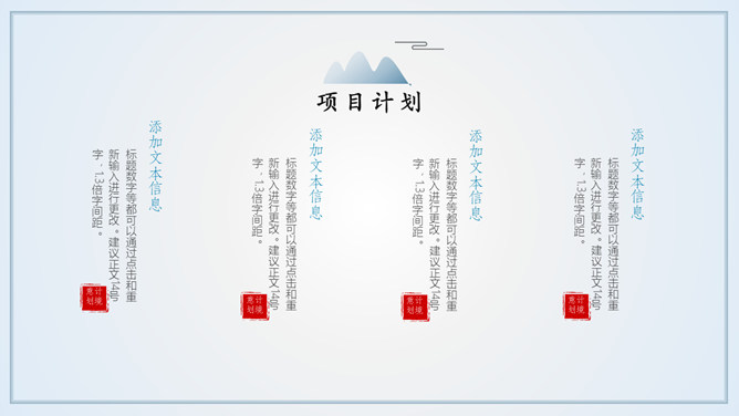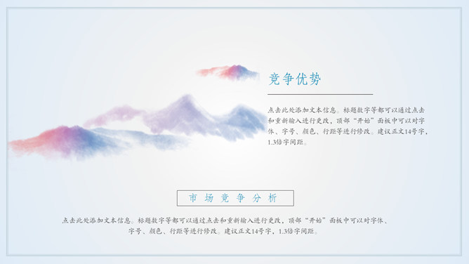 雅致远山群山国风意境PPT模板abby1年前发布关注私信0224911雅致远山群山国风意境PPT模板此内容为付费资源,请付费后查看R1黄金会员免费钻石会员免费立即购买您当前未登录!建议登陆后购买,可保存购买订单付费资源已售 16 淡雅远山群山国风意境PPT模板。一套简约中国风幻灯片模板,淡雅云雾远山背景,多图文排版页面,动态播放。 © 版权声明文章版权归作者所有,未经允许请勿转载。THE ENDPPT模版 喜欢就支持一下吧点赞11 分享QQ空间微博QQ好友海报分享复制链接收藏