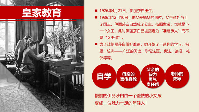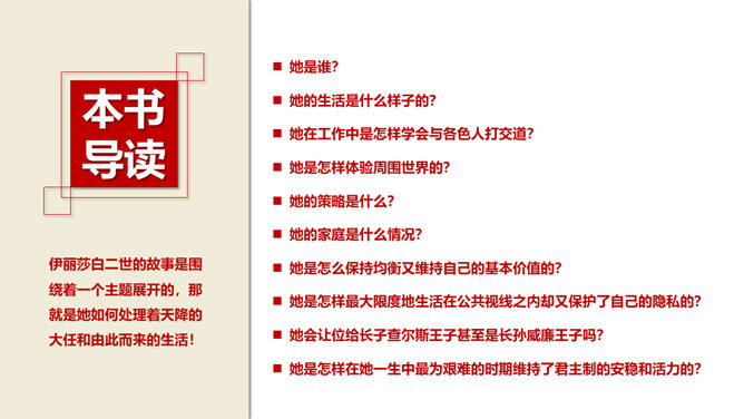 《伊丽莎白女王传》读书笔记PPTabby1年前发布关注私信052218《伊丽莎白女王传》读书笔记PPT此内容为付费资源,请付费后查看R1黄金会员免费钻石会员免费立即购买您当前未登录!建议登陆后购买,可保存购买订单付费资源已售 1 《伊丽莎白女王传》读书笔记PPT。伊丽莎白女王极具传奇性,她是当今世界上最神秘也是知名度最高的女性,她是百年来和平时期出席政府内阁会议的第一位英国君主。 © 版权声明文章版权归作者所有,未经允许请勿转载。THE ENDPPT模版 喜欢就支持一下吧点赞18 分享QQ空间微博QQ好友海报分享复制链接收藏