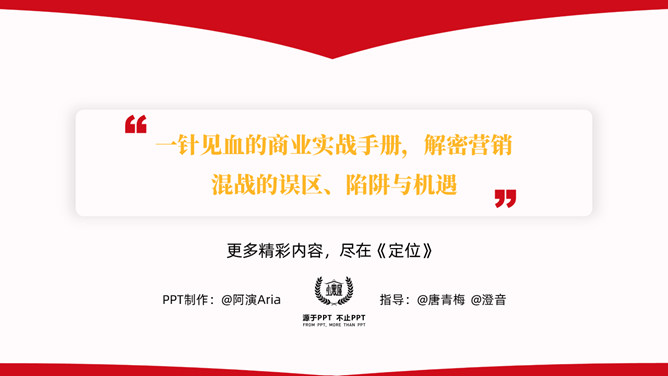 《定位》读书笔记PPTabby1年前发布关注私信03746《定位》读书笔记PPT此内容为付费资源,请付费后查看R1黄金会员免费钻石会员免费立即购买您当前未登录!建议登陆后购买,可保存购买订单付费资源已售 14 《定位》读书笔记PPT。如果只看一本营销书,首选《定位》。一针见血的商业实战手册,解密营销混战的误区、陷阱与机遇。 © 版权声明文章版权归作者所有,未经允许请勿转载。THE ENDPPT模版 喜欢就支持一下吧点赞6 分享QQ空间微博QQ好友海报分享复制链接收藏