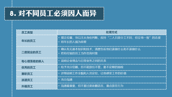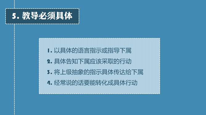 《带人的技术》读书笔记PPTabby1年前发布关注私信019836《带人的技术》读书笔记PPT此内容为付费资源,请付费后查看R1黄金会员免费钻石会员免费立即购买您当前未登录!建议登陆后购买,可保存购买订单付费资源已售 7 《带人的技术》读书笔记PPT。教下属成材的 8 个必须,不懂带人你就自己做到死。教导下属必须关注行为。教之前必须先沟通好。必须准备好教的内容。 © 版权声明文章版权归作者所有,未经允许请勿转载。THE ENDPPT模版 喜欢就支持一下吧点赞6 分享QQ空间微博QQ好友海报分享复制链接收藏