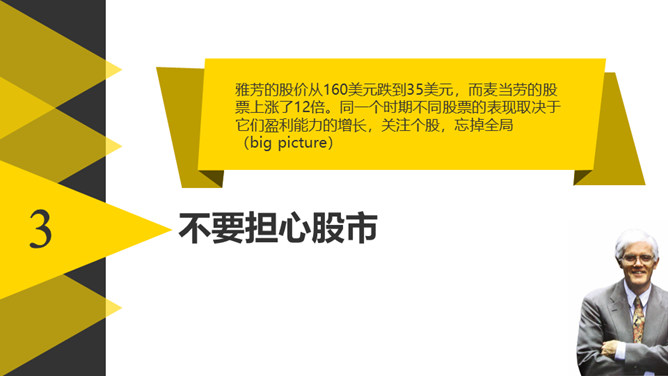 《彼得林奇的成功投资》读书笔记PPTabby1年前发布关注私信0224419《彼得林奇的成功投资》读书笔记PPT此内容为付费资源,请付费后查看R1黄金会员免费钻石会员免费立即购买您当前未登录!建议登陆后购买,可保存购买订单付费资源已售 19 《彼得林奇的成功投资》读书笔记PPT。四个关于投资的规则:了解你持有的股票、作经济预测徒劳无益、不要担心股市、你有充足的时间。 © 版权声明文章版权归作者所有,未经允许请勿转载。THE ENDPPT模版 喜欢就支持一下吧点赞19 分享QQ空间微博QQ好友海报分享复制链接收藏