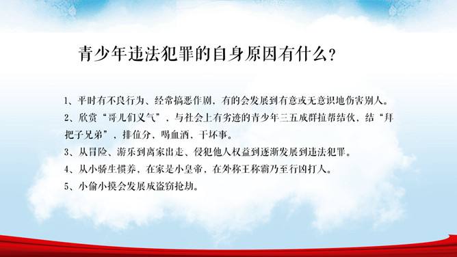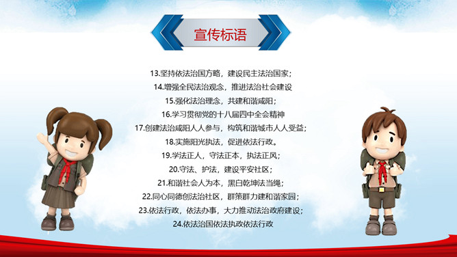 中小学法制宣传主题班会PPT模板abby1年前发布关注私信022727中小学法制宣传主题班会PPT模板此内容为付费资源,请付费后查看R1黄金会员免费钻石会员免费立即购买您当前未登录!建议登陆后购买,可保存购买订单付费资源已售 16 中小学法制宣传主题班会PPT模板。内容包括宪法日简介、法律知识知多少、常见的违法行为、争做合格小学生,该怎么做? © 版权声明文章版权归作者所有,未经允许请勿转载。THE ENDPPT模版 喜欢就支持一下吧点赞7 分享QQ空间微博QQ好友海报分享复制链接收藏