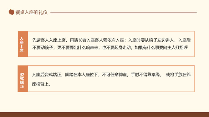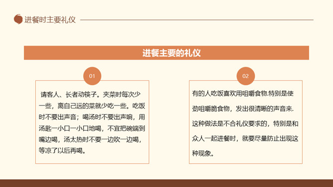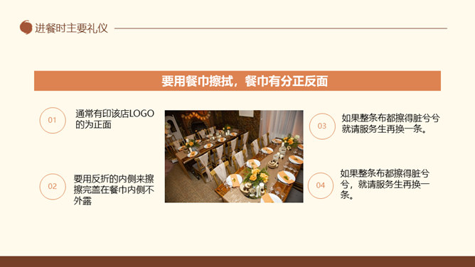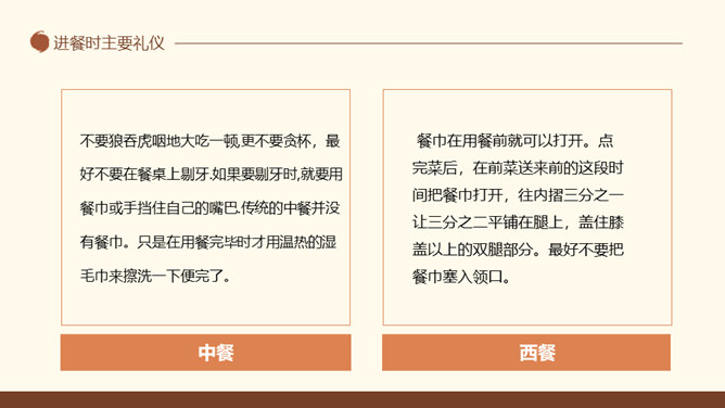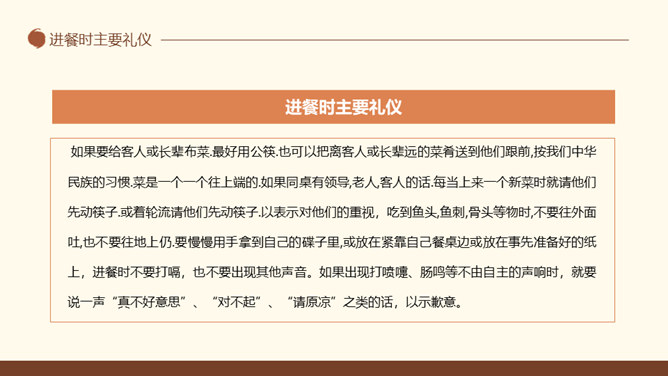 中西方餐桌礼仪培训PPT模板abby1年前发布关注私信099119中西方餐桌礼仪培训PPT模板此内容为付费资源,请付费后查看R1黄金会员免费钻石会员免费立即购买您当前未登录!建议登陆后购买,可保存购买订单付费资源已售 13 中西方餐桌礼仪培训PPT模板。包括餐桌入座的礼仪、餐具的使用方法、进餐时主要礼仪三个部分。 © 版权声明文章版权归作者所有,未经允许请勿转载。THE ENDPPT模版 喜欢就支持一下吧点赞19 分享QQ空间微博QQ好友海报分享复制链接收藏