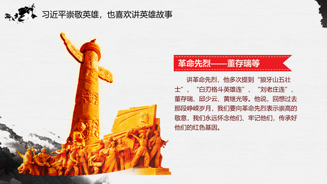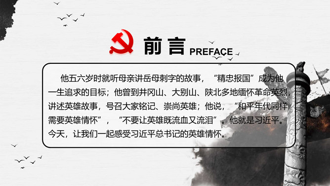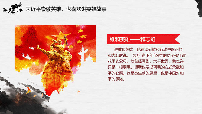 习总书记的英雄情怀PPT模板abby1年前发布关注私信079310习总书记的英雄情怀PPT模板此内容为付费资源,请付费后查看R1黄金会员免费钻石会员免费立即购买您当前未登录!建议登陆后购买,可保存购买订单付费资源已售 18 习总书记的英雄情怀PPT模板。内容包括精忠报国、铭记一切英雄、我们需要英雄精神、今天的中国需要英雄、普通人伟大的心、英雄在习近平心中重逾千钧。 © 版权声明文章版权归作者所有,未经允许请勿转载。THE ENDPPT模版 喜欢就支持一下吧点赞10 分享QQ空间微博QQ好友海报分享复制链接收藏