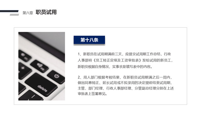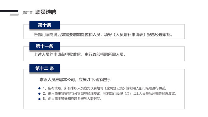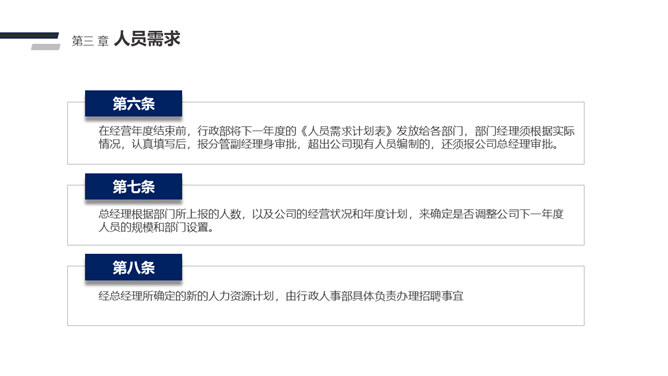 人事管理制度培训PPT模板abby1年前发布关注私信010613人事管理制度培训PPT模板此内容为付费资源,请付费后查看R1黄金会员免费钻石会员免费立即购买您当前未登录!建议登陆后购买,可保存购买订单付费资源已售 14 人事管理制度培训PPT模板。一套企业公司人事管理制度培训PPT课件模板,包括人事管理权限、人员需求、职员的选聘、员工的考勤、休假、请假制度等多项内容。 © 版权声明文章版权归作者所有,未经允许请勿转载。THE ENDPPT模版 喜欢就支持一下吧点赞3 分享QQ空间微博QQ好友海报分享复制链接收藏