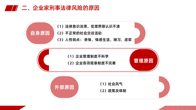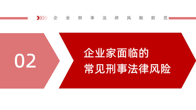 企业刑事法律风险防范PPT课件模板abby1年前发布关注私信021371企业刑事法律风险防范PPT课件模板此内容为付费资源,请付费后查看R1黄金会员免费钻石会员免费立即购买您当前未登录!建议登陆后购买,可保存购买订单付费资源已售 2 企业刑事法律风险防范PPT课件模板。包括企业高管与刑事犯罪、企业家面临的常见刑事法律风险、国有企业的刑事风险、企业家刑事法律风险控制与防范、企业家身处危境的自我保护等内容。 © 版权声明文章版权归作者所有,未经允许请勿转载。THE ENDPPT模版 喜欢就支持一下吧点赞1 分享QQ空间微博QQ好友海报分享复制链接收藏