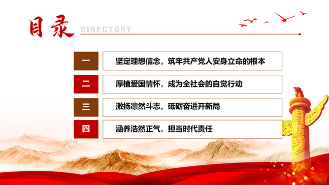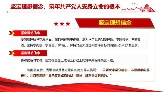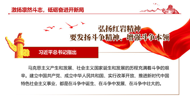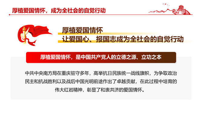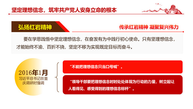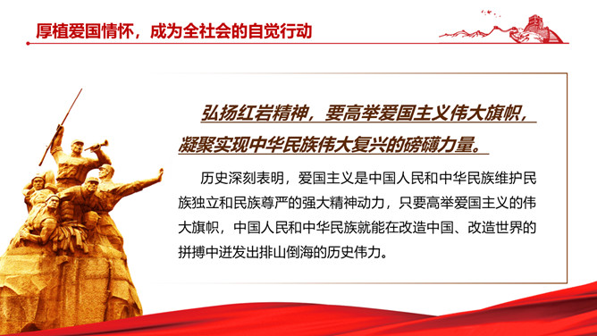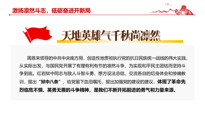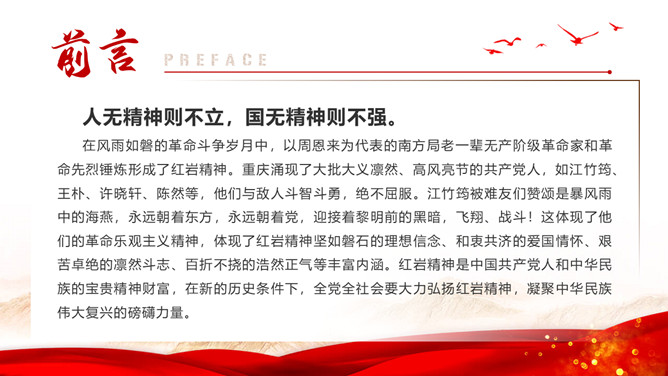 伟大红岩精神PPT模板abby1年前发布关注私信05447伟大红岩精神PPT模板此内容为付费资源,请付费后查看R1黄金会员免费钻石会员免费立即购买您当前未登录!建议登陆后购买,可保存购买订单付费资源已售 2 伟大红岩精神PPT模板。内容包括:坚定理想信念,筑牢共产党人安身立命的根本。厚植爱国情怀,成为全社会的自觉行动。激扬凛然斗志,砥砺奋进开新局。涵养浩然正气,担当时代责任。 © 版权声明文章版权归作者所有,未经允许请勿转载。THE ENDPPT模版 喜欢就支持一下吧点赞7 分享QQ空间微博QQ好友海报分享复制链接收藏