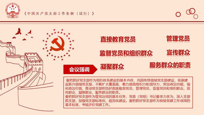 党支部工作条例解读PPT模板abby1年前发布关注私信0196413党支部工作条例解读PPT模板此内容为付费资源,请付费后查看R1黄金会员免费钻石会员免费立即购买您当前未登录!建议登陆后购买,可保存购买订单付费资源已售 5 党支部工作条例解读PPT模板。学习领会中共中央政治局会议精神、全国干部教育培训规划、怎样认真遵照执行。 © 版权声明文章版权归作者所有,未经允许请勿转载。THE ENDPPT模版 喜欢就支持一下吧点赞13 分享QQ空间微博QQ好友海报分享复制链接收藏