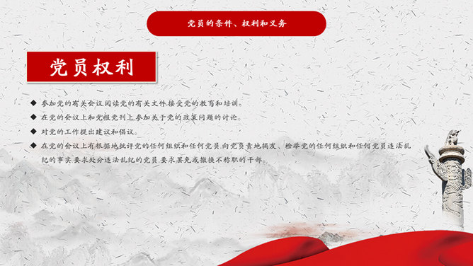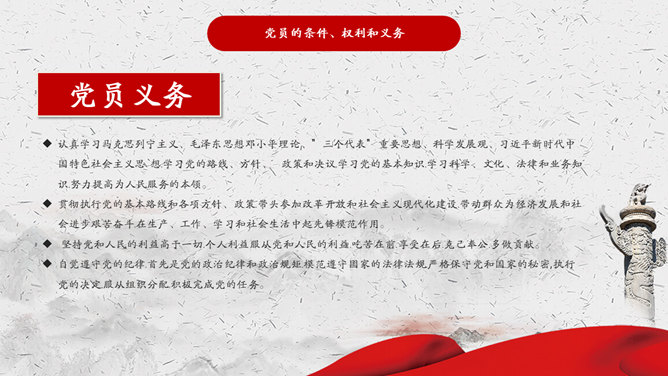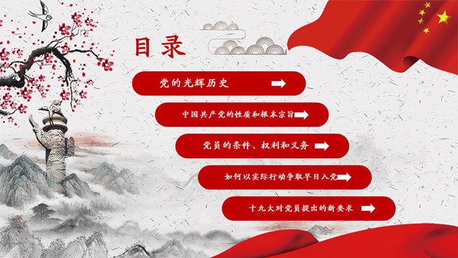 入党积极分子答辩培训PPT模板abby1年前发布关注私信034920入党积极分子答辩培训PPT模板此内容为付费资源,请付费后查看R1黄金会员免费钻石会员免费立即购买您当前未登录!建议登陆后购买,可保存购买订单付费资源已售 3 入党积极分子培训PPT模板。包括党的光辉历史、中国共产党的性质和根本宗旨、党员的条件、权利和义务、如何以实际行动争取早日入党等内容。 © 版权声明文章版权归作者所有,未经允许请勿转载。THE ENDPPT模版 喜欢就支持一下吧点赞20 分享QQ空间微博QQ好友海报分享复制链接收藏
