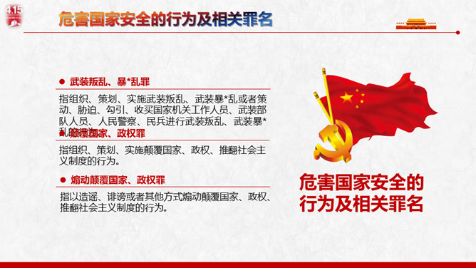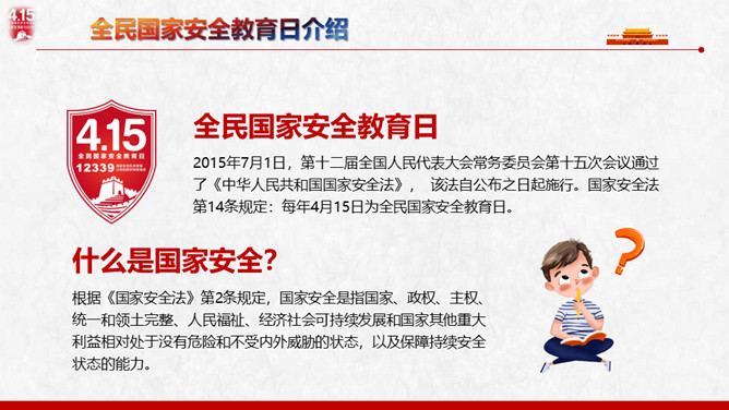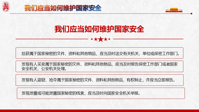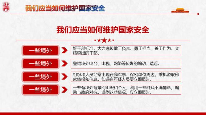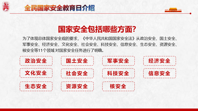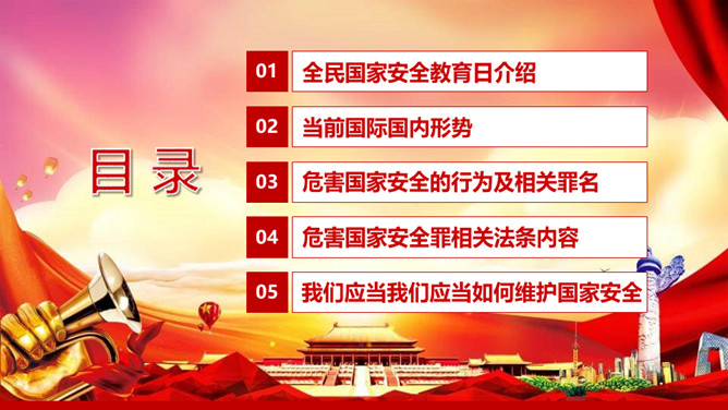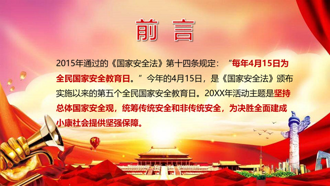 全民国家安全教育日主题PPT模板abby1年前发布关注私信018152全民国家安全教育日主题PPT模板此内容为付费资源,请付费后查看R1黄金会员免费钻石会员免费立即购买您当前未登录!建议登陆后购买,可保存购买订单付费资源已售 12 全民国家安全教育日主题PPT模板。内容包括全民国家安全教育日介绍、当前国际国内形势、危害国家安全的行为及相关罪名、危害国家安全罪相关法条内容、我们应当我们应当如何维护国家安全。 © 版权声明文章版权归作者所有,未经允许请勿转载。THE ENDPPT模版 喜欢就支持一下吧点赞2 分享QQ空间微博QQ好友海报分享复制链接收藏