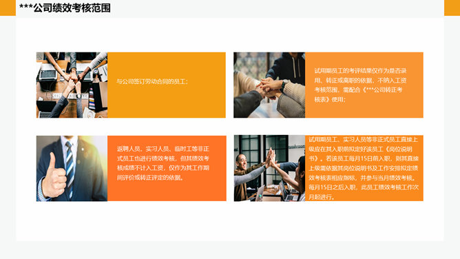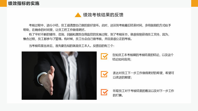 公司绩效管理培训PPT模板abby1年前发布关注私信014544公司绩效管理培训PPT模板此内容为付费资源,请付费后查看R1黄金会员免费钻石会员免费立即购买您当前未登录!建议登陆后购买,可保存购买订单付费资源已售 7 公司绩效管理培训PPT模板。企业的绩效管理就是一种由上而下的目标分解部署,通过每个人的行为产生的结果,实现部门目标;再由部门目标的实现,最终实现企业的整体目标的管理方式。 © 版权声明文章版权归作者所有,未经允许请勿转载。THE ENDPPT模版 喜欢就支持一下吧点赞4 分享QQ空间微博QQ好友海报分享复制链接收藏