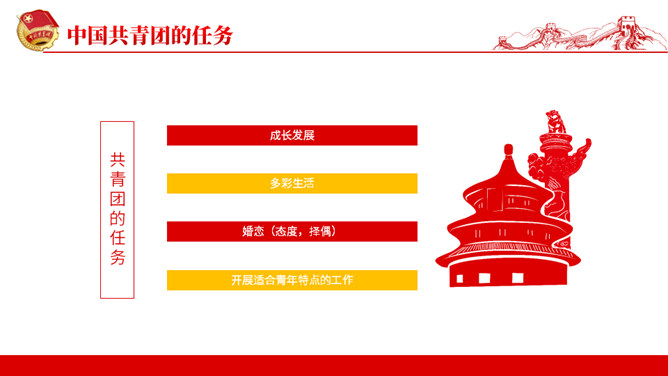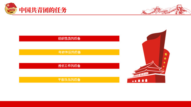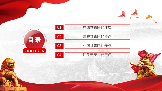 共青团介绍团课PPT模板abby1年前发布关注私信0100617共青团介绍团课PPT模板此内容为付费资源,请付费后查看R1黄金会员免费钻石会员免费立即购买您当前未登录!建议登陆后购买,可保存购买订单付费资源已售 7 共青团介绍团课PPT模板。内容包括中国共青团的性质、高校共青团的特点、中国共青团的任务、团学干部主要责任。 © 版权声明文章版权归作者所有,未经允许请勿转载。THE ENDPPT模版 喜欢就支持一下吧点赞17 分享QQ空间微博QQ好友海报分享复制链接收藏