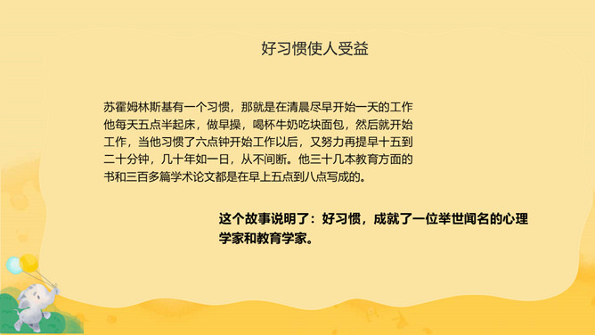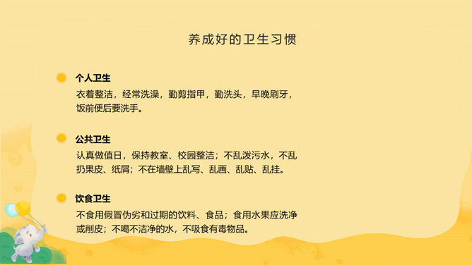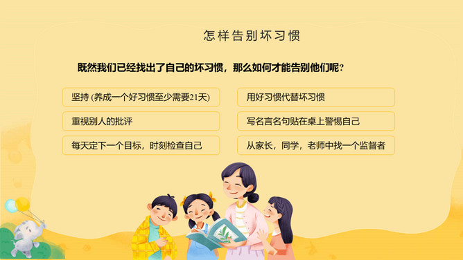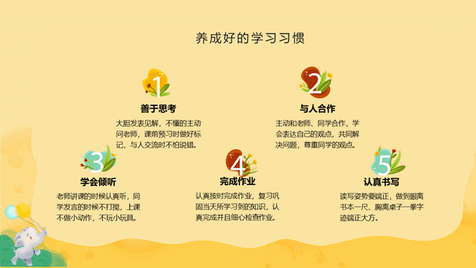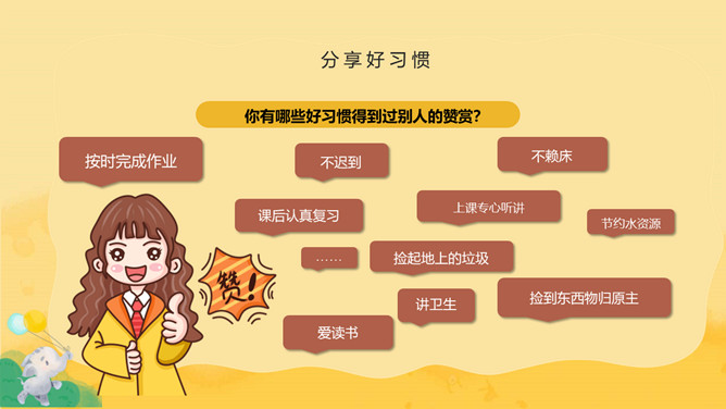 养成良好习惯班会PPT模板abby1年前发布关注私信014991养成良好习惯班会PPT模板此内容为付费资源,请付费后查看R1黄金会员免费钻石会员免费立即购买您当前未登录!建议登陆后购买,可保存购买订单付费资源已售 7 养成良好习惯班会PPT模板。课堂有纪律,认真听讲,做好笔记。课间有秩序,不喧哗打闹。两操动作有到位,精神状态有饱满。讲文明懂礼貌,学会欣赏老师。心中有他人,不自私,多为他人着想。 © 版权声明文章版权归作者所有,未经允许请勿转载。THE ENDPPT模版 喜欢就支持一下吧点赞1 分享QQ空间微博QQ好友海报分享复制链接收藏