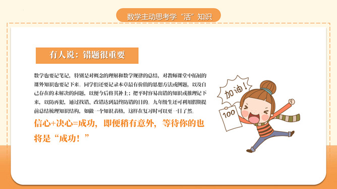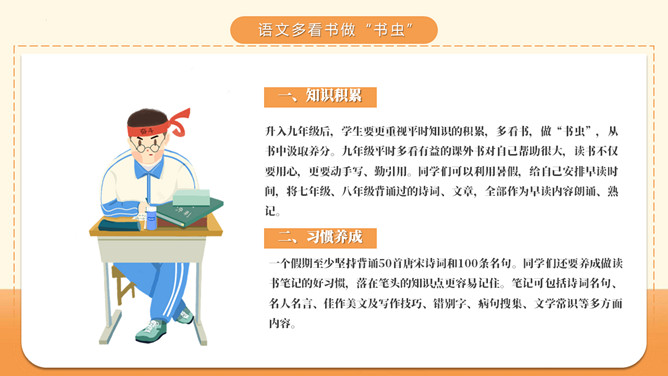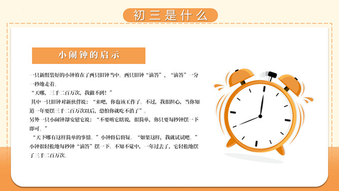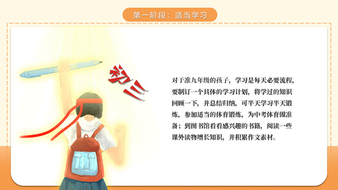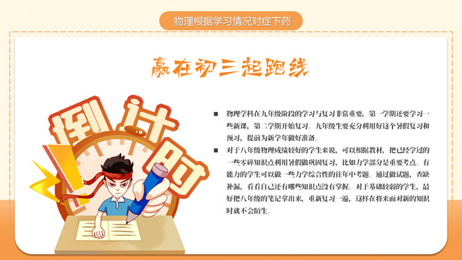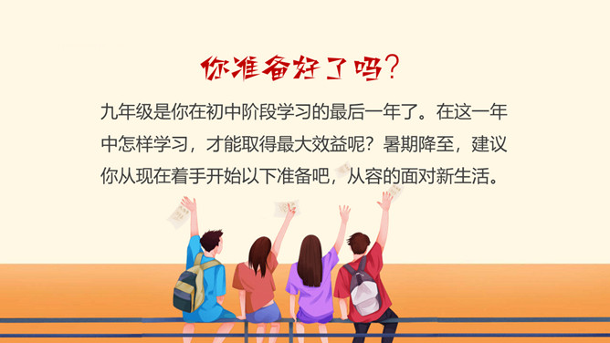 初三励志主题班会PPT模板abby1年前发布关注私信0159419初三励志主题班会PPT模板此内容为付费资源,请付费后查看R1黄金会员免费钻石会员免费立即购买您当前未登录!建议登陆后购买,可保存购买订单付费资源已售 6 九年级是你在初中阶段学习的最后一年了。在这一年中怎样学习,才能取得最大效益呢?暑期降至,建议你从现在着手开始以下准备吧,从容的面对新生活。 © 版权声明文章版权归作者所有,未经允许请勿转载。THE ENDPPT模版 喜欢就支持一下吧点赞19 分享QQ空间微博QQ好友海报分享复制链接收藏