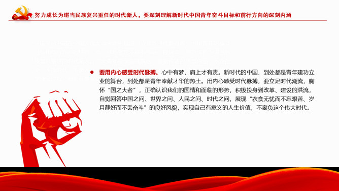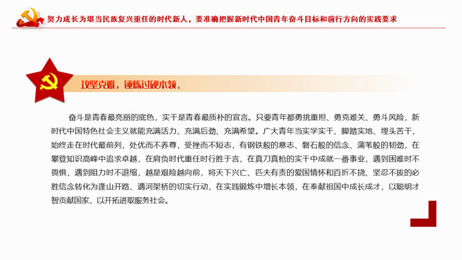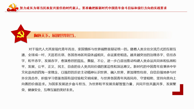 努力成为堪当民族复兴重任时代新人PPT模板abby1年前发布关注私信080314努力成为堪当民族复兴重任时代新人PPT模板此内容为付费资源,请付费后查看R1黄金会员免费钻石会员免费立即购买您当前未登录!建议登陆后购买,可保存购买订单付费资源已售 9 努力成长为堪当民族复兴重任的时代新人PPT模板。要深刻理解新时代中国青年奋斗目标和前行方向的深刻内涵,要准确把握新时代中国青年奋斗目标和前行方向的实践要求。 © 版权声明文章版权归作者所有,未经允许请勿转载。THE ENDPPT模版 喜欢就支持一下吧点赞14 分享QQ空间微博QQ好友海报分享复制链接收藏
