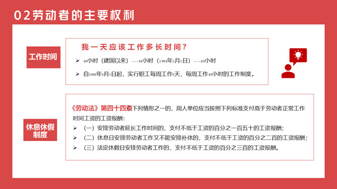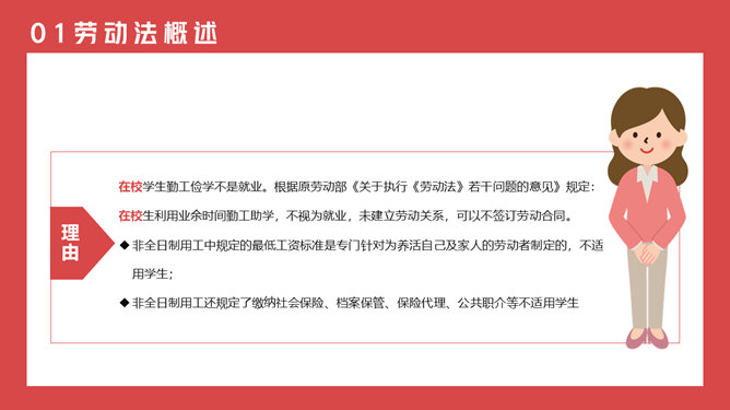劳动法普法宣传PPT模板abby1年前发布关注私信0134911劳动法普法宣传PPT模板此内容为付费资源,请付费后查看R1黄金会员免费钻石会员免费立即购买您当前未登录!建议登陆后购买,可保存购买订单付费资源已售 14 劳动法普法宣传PPT模板。包括劳动法概述、劳动者的主要权利、劳动合同、社会保险制度等内容。 © 版权声明文章版权归作者所有,未经允许请勿转载。THE ENDPPT模版 喜欢就支持一下吧点赞11 分享QQ空间微博QQ好友海报分享复制链接收藏