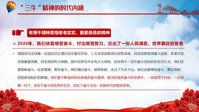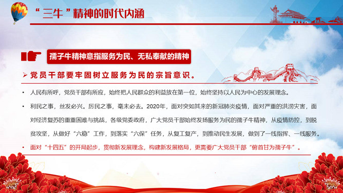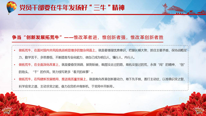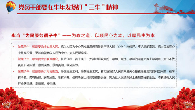 发扬三牛精神书写时代新答卷PPT模板abby1年前发布关注私信096112发扬三牛精神书写时代新答卷PPT模板此内容为付费资源,请付费后查看R1黄金会员免费钻石会员免费立即购买您当前未登录!建议登陆后购买,可保存购买订单付费资源已售 3 发扬三牛精神书写时代新答卷PPT模板。内容包括:“三牛”精神的时代内涵。发扬“三牛”精神,汇聚开创新局的磅礴力量。党员干部要在牛年发扬好“三牛”精神。 © 版权声明文章版权归作者所有,未经允许请勿转载。THE ENDPPT模版 喜欢就支持一下吧点赞12 分享QQ空间微博QQ好友海报分享复制链接收藏