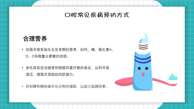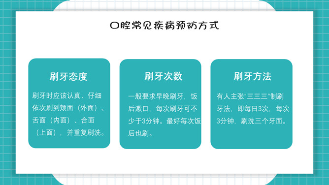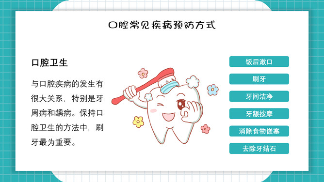口腔牙齿健康护理保健PPT模板abby1年前发布关注私信0137012口腔牙齿健康护理保健PPT模板此内容为付费资源,请付费后查看R1黄金会员免费钻石会员免费立即购买您当前未登录!建议登陆后购买,可保存购买订单付费资源已售 10 口腔牙齿健康护理保健PPT模板。包括口腔常见疾病预防、科学保护牙齿、口臭病症的预防三部分。 © 版权声明文章版权归作者所有,未经允许请勿转载。THE ENDPPT模版 喜欢就支持一下吧点赞12 分享QQ空间微博QQ好友海报分享复制链接收藏