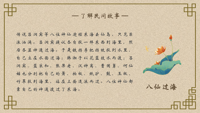 古风民间故事介绍PPT模板abby1年前发布关注私信077618古风民间故事介绍PPT模板此内容为付费资源,请付费后查看R1黄金会员免费钻石会员免费立即购买您当前未登录!建议登陆后购买,可保存购买订单付费资源已售 9 古风民间故事介绍PPT模板。内容包括走近民间故事、中国民间故事、了解民间故事、阅读成果展示等部分。 © 版权声明文章版权归作者所有,未经允许请勿转载。THE ENDPPT模版 喜欢就支持一下吧点赞18 分享QQ空间微博QQ好友海报分享复制链接收藏