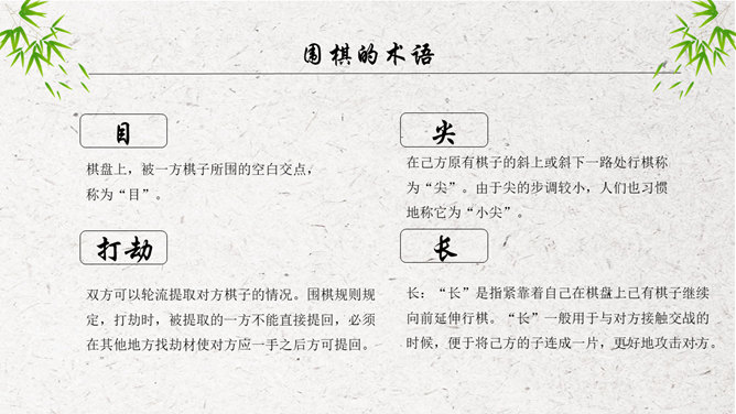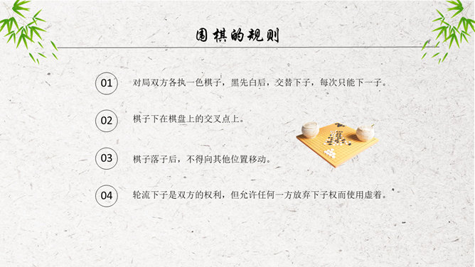 围棋入门常识知识PPT模板abby1年前发布关注私信05511围棋入门常识知识PPT模板此内容为付费资源,请付费后查看R1黄金会员免费钻石会员免费立即购买您当前未登录!建议登陆后购买,可保存购买订单付费资源已售 11 围棋入门常识知识PPT模板。包括围棋的历史、围棋的棋具、围棋的规则、围棋的术语四个部分。 © 版权声明文章版权归作者所有,未经允许请勿转载。THE ENDPPT模版 喜欢就支持一下吧点赞1 分享QQ空间微博QQ好友海报分享复制链接收藏