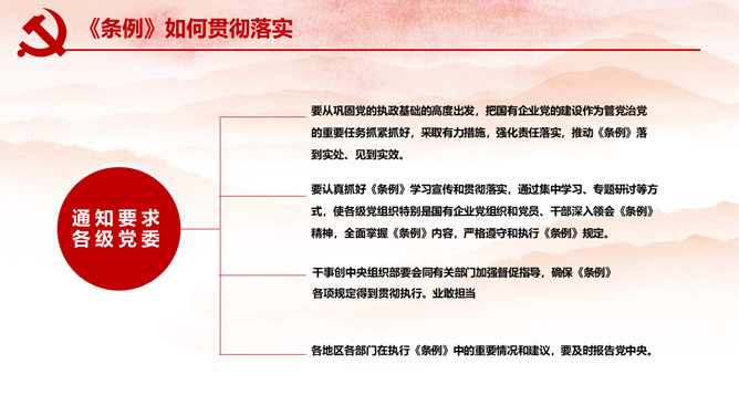 国有企业基层组织工作条例PPT模板abby1年前发布关注私信074313国有企业基层组织工作条例PPT模板此内容为付费资源,请付费后查看R1黄金会员免费钻石会员免费立即购买您当前未登录!建议登陆后购买,可保存购买订单付费资源已售 6 国有企业基层组织工作条例PPT模板。逐条对《中国共产党国有企业基层组织工作条例(试行)》进行详细解读。 © 版权声明文章版权归作者所有,未经允许请勿转载。THE ENDPPT模版 喜欢就支持一下吧点赞13 分享QQ空间微博QQ好友海报分享复制链接收藏