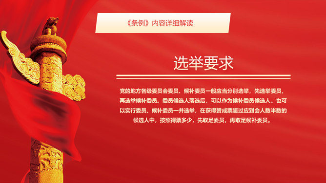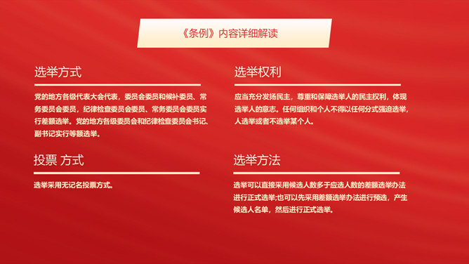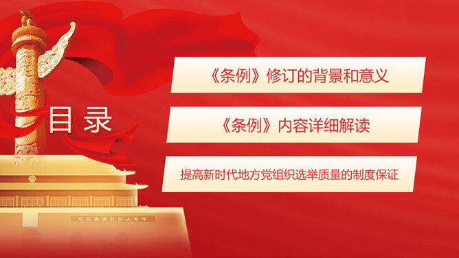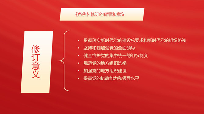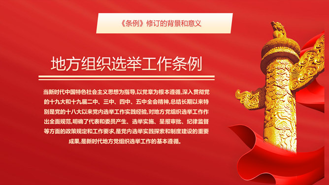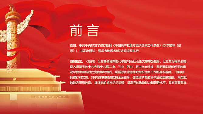 地方组织选举工作条例PPT模板abby1年前发布关注私信012868地方组织选举工作条例PPT模板此内容为付费资源,请付费后查看R1黄金会员免费钻石会员免费立即购买您当前未登录!建议登陆后购买,可保存购买订单付费资源已售 18 地方组织选举工作条例PPT模板。修订的背景和意义、内容详细解读、提高新时代地方党组织选举质量的制度保证。 © 版权声明文章版权归作者所有,未经允许请勿转载。THE ENDPPT模版 喜欢就支持一下吧点赞8 分享QQ空间微博QQ好友海报分享复制链接收藏