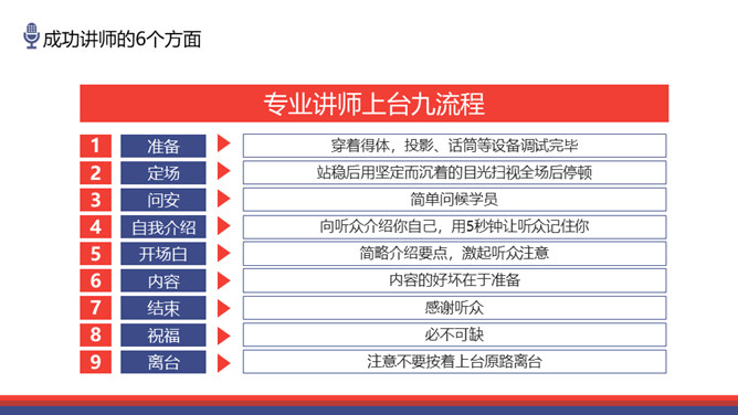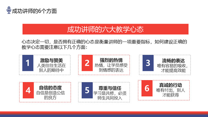 如何做优秀的培训讲师PPT模板abby1年前发布关注私信0179612如何做优秀的培训讲师PPT模板此内容为付费资源,请付费后查看R1黄金会员免费钻石会员免费立即购买您当前未登录!建议登陆后购买,可保存购买订单付费资源已售 7 如何做优秀的培训讲师PPT模板。包括成功讲师的6个方面。培训讲师的授课目的。成人学员的学习特点三部分。 © 版权声明文章版权归作者所有,未经允许请勿转载。THE ENDPPT模版 喜欢就支持一下吧点赞12 分享QQ空间微博QQ好友海报分享复制链接收藏