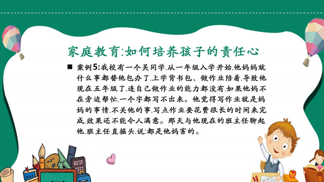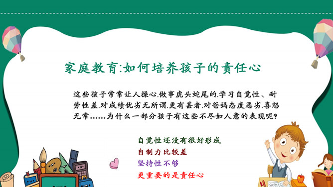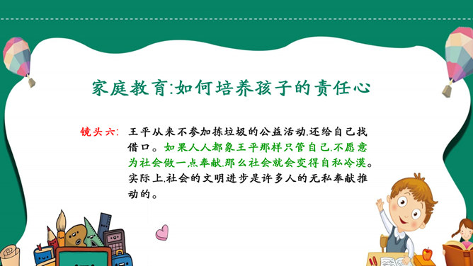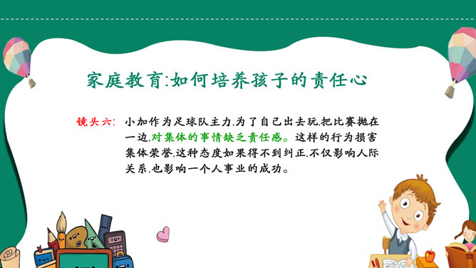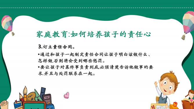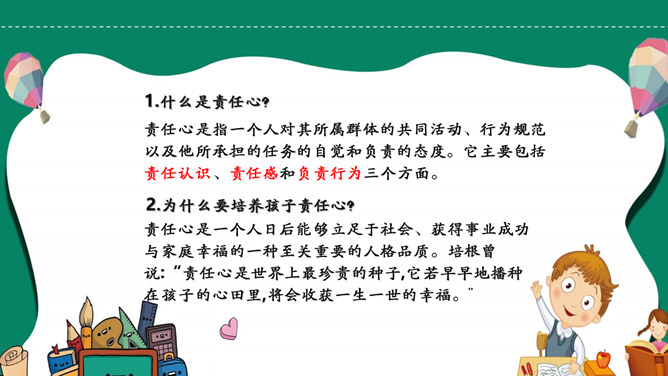 如何培养孩子的责任心PPT模板abby1年前发布关注私信021109如何培养孩子的责任心PPT模板此内容为付费资源,请付费后查看R1黄金会员免费钻石会员免费立即购买您当前未登录!建议登陆后购买,可保存购买订单付费资源已售 4 如何培养孩子的责任心PPT模板。责任心是指一个人对其所属群体的共同活动、行为规范以及他所承担的任务的自觉和负责的态度。它主要包括责任认识、责任感和负责行为三个方面。 © 版权声明文章版权归作者所有,未经允许请勿转载。THE ENDPPT模版 喜欢就支持一下吧点赞9 分享QQ空间微博QQ好友海报分享复制链接收藏