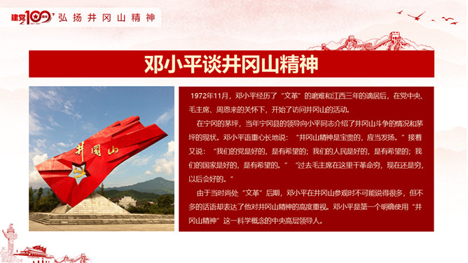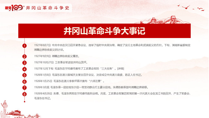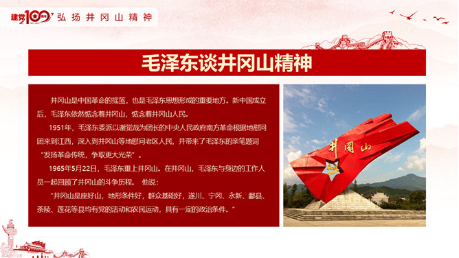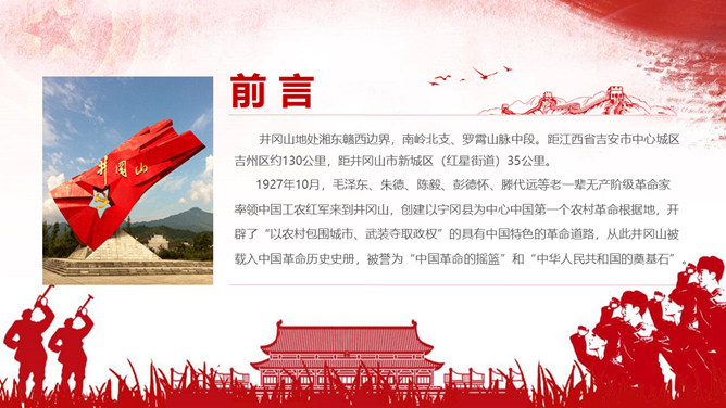 学习井冈山精神PPT模板abby1年前发布关注私信023464学习井冈山精神PPT模板此内容为付费资源,请付费后查看R1黄金会员免费钻石会员免费立即购买您当前未登录!建议登陆后购买,可保存购买订单付费资源已售 2 学习井冈山精神PPT模板。内容包括井冈山革命斗争史、井冈山精神解读、弘扬井冈山精神。 © 版权声明文章版权归作者所有,未经允许请勿转载。THE ENDPPT模版 喜欢就支持一下吧点赞4 分享QQ空间微博QQ好友海报分享复制链接收藏