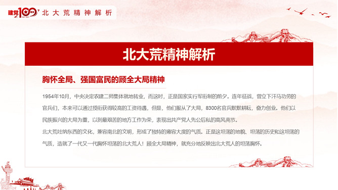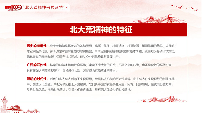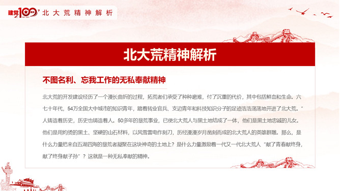 学习北大荒精神PPT模板abby1年前发布关注私信092420学习北大荒精神PPT模板此内容为付费资源,请付费后查看R1黄金会员免费钻石会员免费立即购买您当前未登录!建议登陆后购买,可保存购买订单付费资源已售 4 学习北大荒精神PPT模板。内容包括北大荒精神内涵及解析、北大荒精神形成及特征、北大荒开垦纪实、北大荒的那些人。 © 版权声明文章版权归作者所有,未经允许请勿转载。THE ENDPPT模版 喜欢就支持一下吧点赞20 分享QQ空间微博QQ好友海报分享复制链接收藏