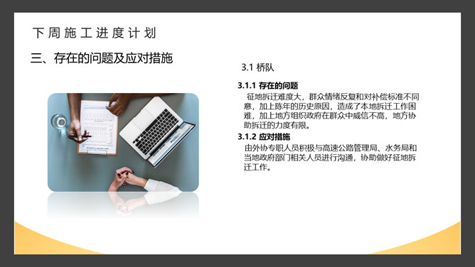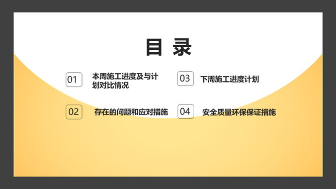 安全施工周例会PPT模板abby1年前发布关注私信0102519安全施工周例会PPT模板此内容为付费资源,请付费后查看R1黄金会员免费钻石会员免费立即购买您当前未登录!建议登陆后购买,可保存购买订单付费资源已售 8 安全施工周例会PPT模板。本周施工进度及与计划对比情况、存在的问题和应对措施、下周施工进度计划、安全质量环保保证措施。 © 版权声明文章版权归作者所有,未经允许请勿转载。THE ENDPPT模版 喜欢就支持一下吧点赞19 分享QQ空间微博QQ好友海报分享复制链接收藏