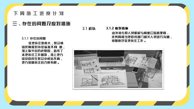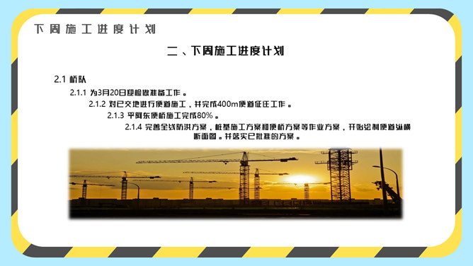 安全生产施工周例会PPT模板abby1年前发布关注私信015762安全生产施工周例会PPT模板此内容为付费资源,请付费后查看R1黄金会员免费钻石会员免费立即购买您当前未登录!建议登陆后购买,可保存购买订单付费资源已售 15 安全生产施工周例会PPT模板。一套安全施工、安全生产周例会或月例会幻灯片模板,黑黄警示元素设计。 © 版权声明文章版权归作者所有,未经允许请勿转载。THE ENDPPT模版 喜欢就支持一下吧点赞2 分享QQ空间微博QQ好友海报分享复制链接收藏