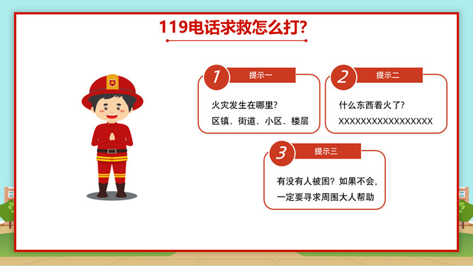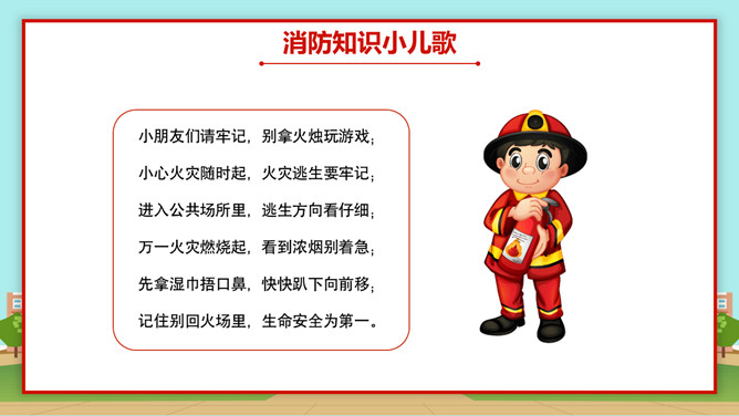 小学生消防安全知识班会PPT模板abby1年前发布关注私信0233422小学生消防安全知识班会PPT模板此内容为付费资源,请付费后查看R1黄金会员免费钻石会员免费立即购买您当前未登录!建议登陆后购买,可保存购买订单付费资源已售 18 小学生消防安全知识班会PPT模板。内容包括火的用途和危害、常见的消防标识、常见的消防器材、遇到火灾怎么办。 © 版权声明文章版权归作者所有,未经允许请勿转载。THE ENDPPT模版 喜欢就支持一下吧点赞22 分享QQ空间微博QQ好友海报分享复制链接收藏